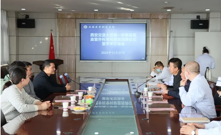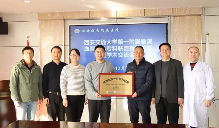 2024年12月27日,我院与西安交大一附院成功举办了血管外科专科联盟暨学术交流活动,交大一附院血管外科副主任蔡惠教授等一行四人以及我院常务副院长章忠林、业务副院长张选成等领导出席此次活动,部分医生、护士长以及职能科室约80人参加了授牌及学术交流活动,活动在我院门诊七楼多媒体学术厅由业务副院长张选成主持。