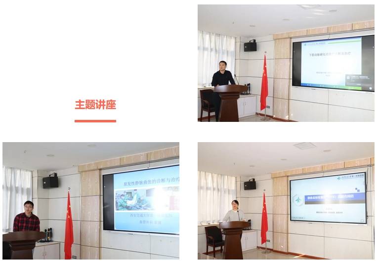 西安交大一附院叶远鹏、董健、孙静岚等教授,分别围绕《血管外科疾病诊治现状》、《下肢动脉硬化闭塞诊断与治疗》、《下肢静脉曲张规范化治疗》、《院内DVT管理》主题进行精彩学术讲座,让与会人员受益匪浅,收获满满。